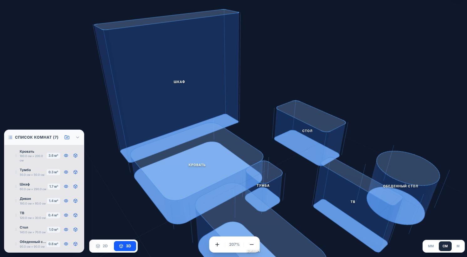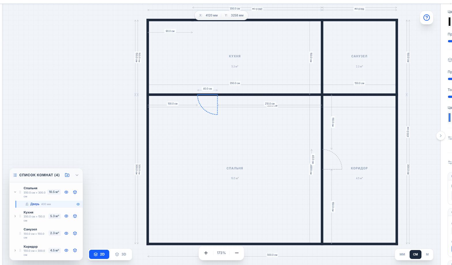 Создайте точный план с реальными размерами: разместите комнаты, рассчитайте площадь и продумайте зонирование до начала ремонта.