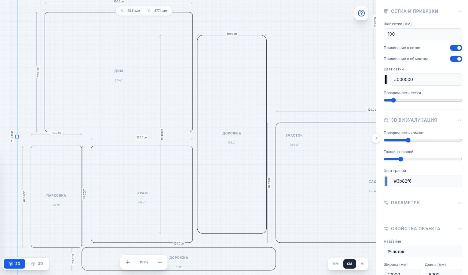 Создавайте точные планы квартиры, дома, офиса или участка за несколько минут: задавайте реальные размеры, размещайте элементы и экспортируйте результат в PNG. Подходит для планирования ремонта, расстановки мебели, проектирования участка или быстрого наброска любой идеи.